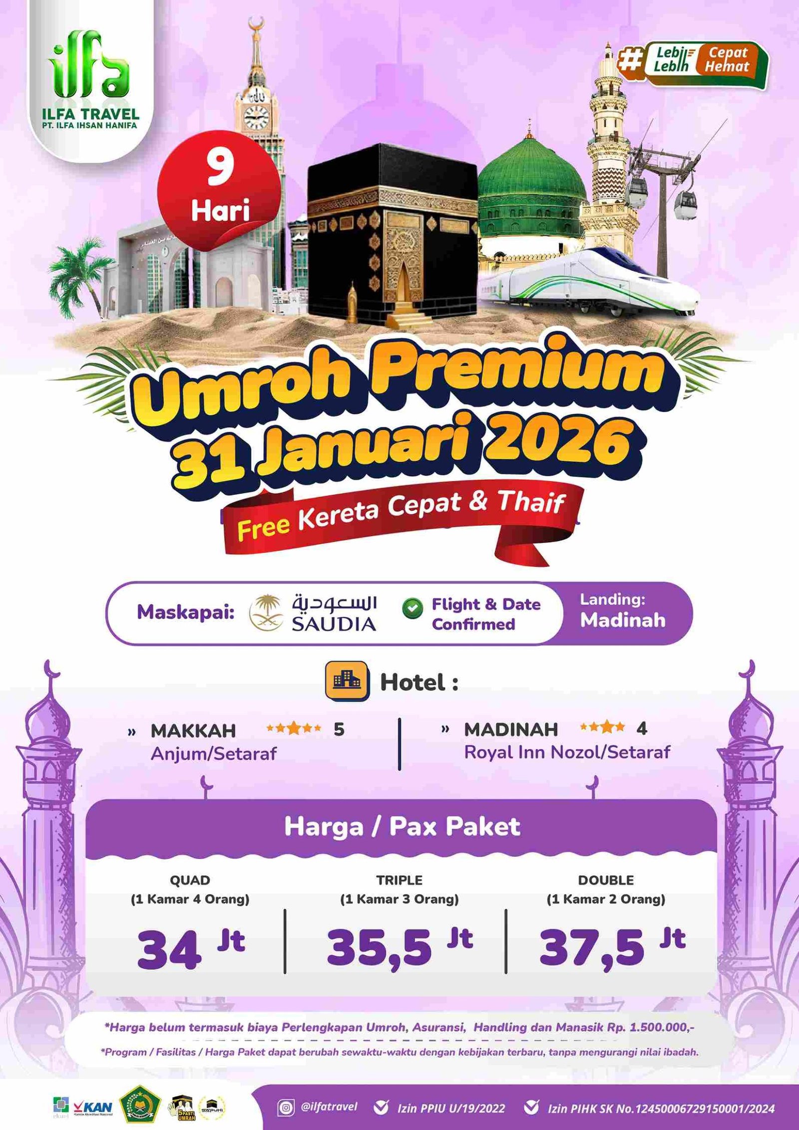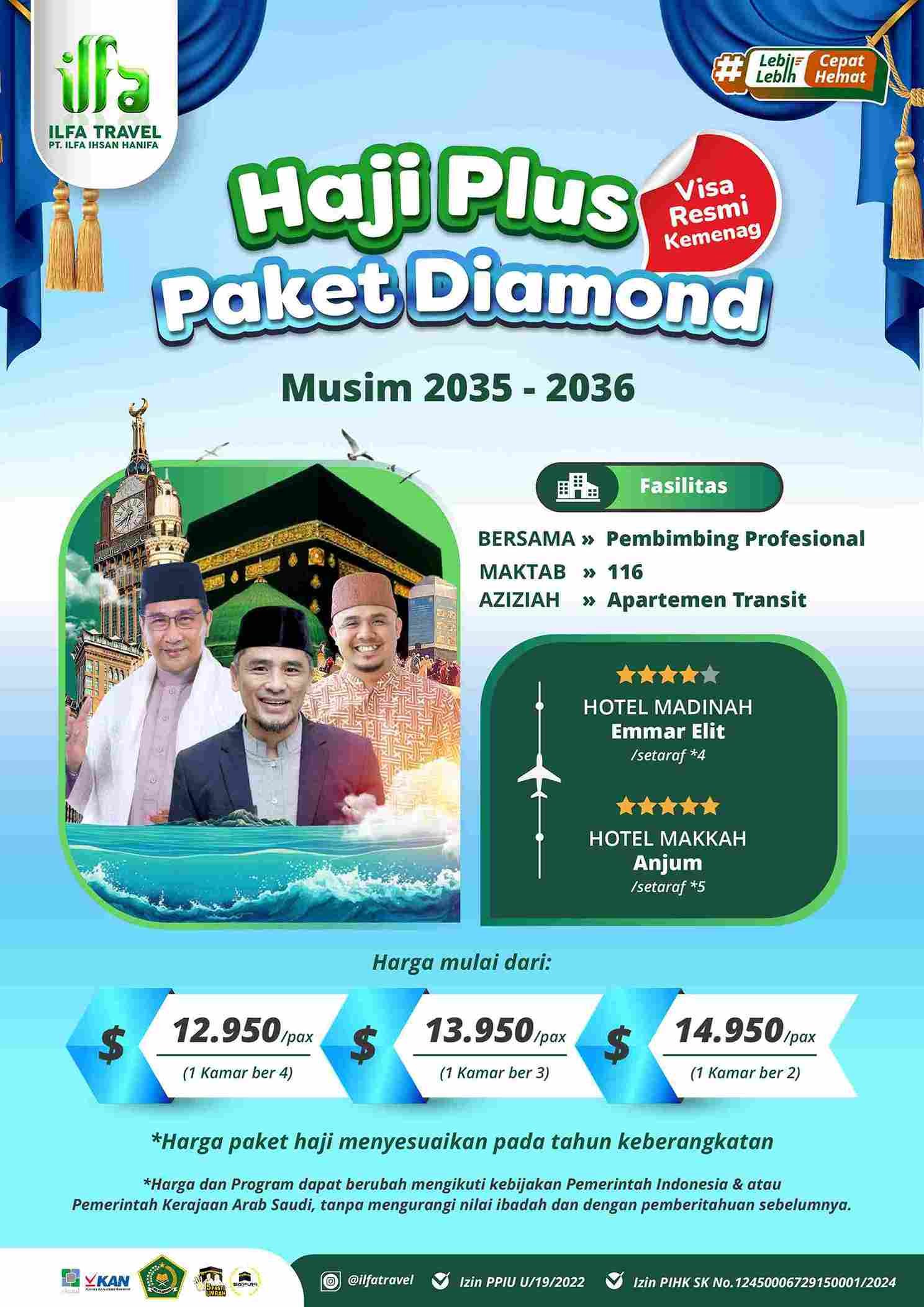 - Harga Menyesuaikan dengan Fasilitas dan Kenyaman Jamaah.