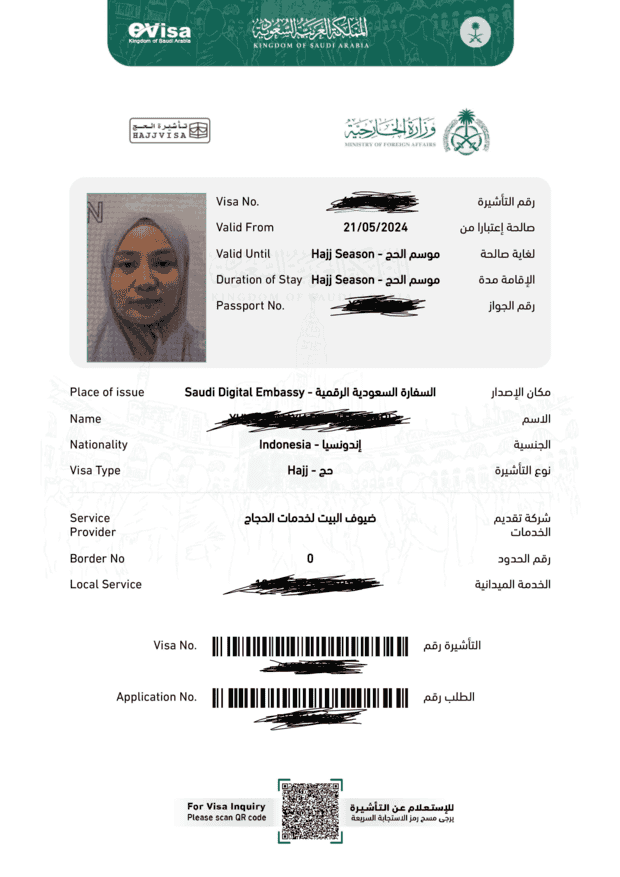 Oleh karenanya, calon jamaah haji harus memiliki visa yang bernama Visa Haji tersebut sebagai syarat sah untuk perjalanan ke Tanah Suci. Jangan sampai calon jamaah tidak memiliki visa atau visa yang digunakan bukan untuk ibadah haji yang tentunya menimbulkan permasalahann legal pada saat melakukan ibadah haji di Tanah suci.