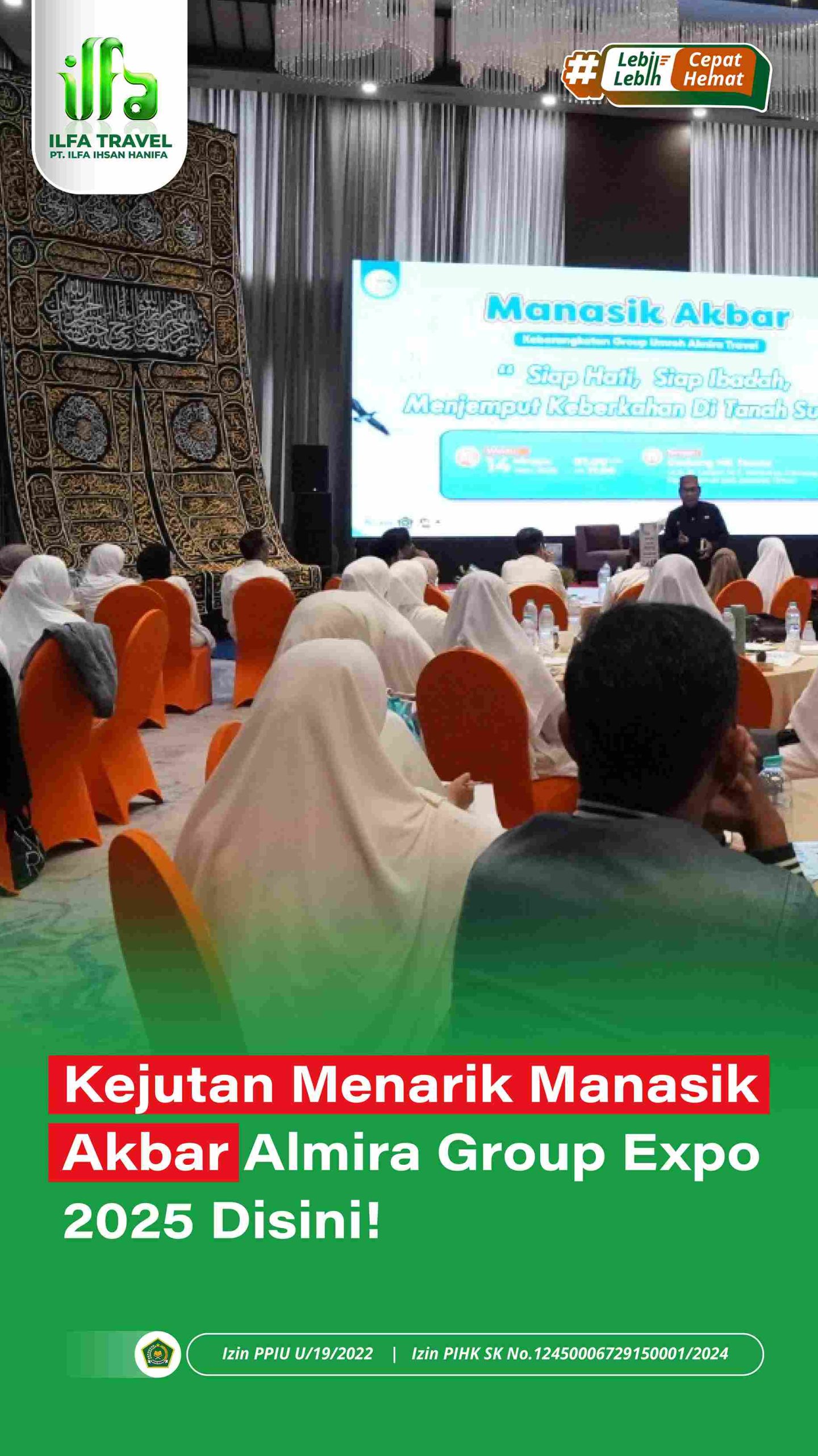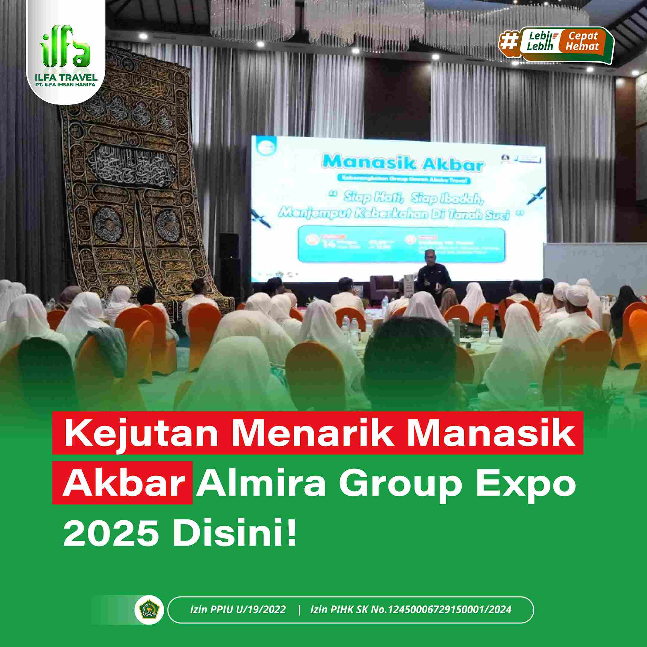 Manasik Akbar – Almira Group telah melaksanakan kegiatan Manasik Akbar yang dibarengi dengan pameran bertema Almira Group Expo 2025. Ini merupakan ajang membuka peluang untuk jamaah dan calon jamaah di Almira Group dengan menaungi beberapa Travel yaitu: Almira Travel, Ilfa Travel, & Kaaba Wisata.